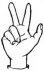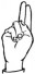 На ћирилици написано ВИОЛЕТА УЛЕМЕК састоји се из 13 слова [?]. Исписано ћириличном једноручном азбуком за глувонеме: